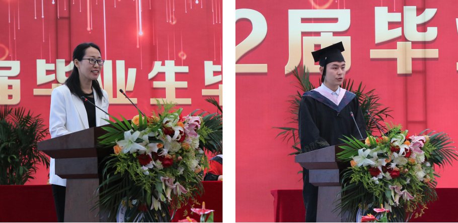 教師代表機電工程學院劉安琴、畢業(yè)生代表會計與金融學院王月軒分別上臺并發(fā)言,優(yōu)秀畢業(yè)生代表向老師敬獻鮮花以表師恩難忘。