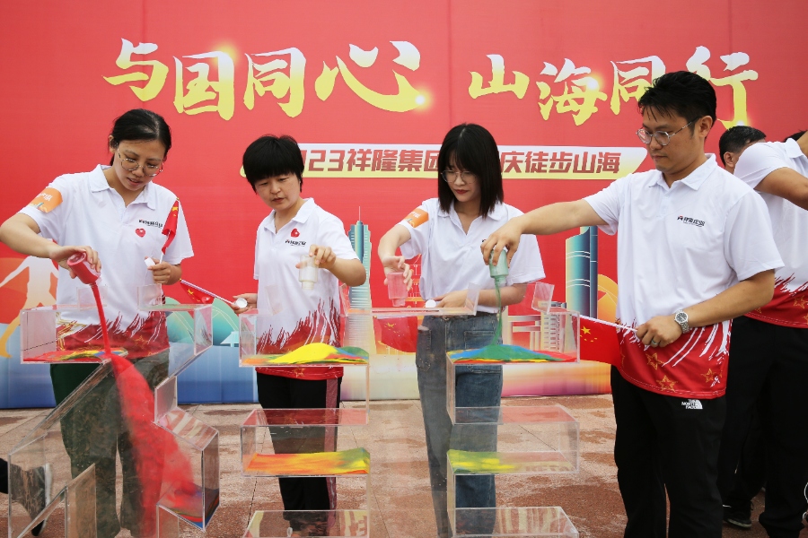 集團各級領(lǐng)導和各代表隊將之前通過活動競賽獲得的獎勵彩沙倒入“祥隆”二字中,象征著集團的發(fā)展離不開每個祥隆人的辛勤努力和奉獻。每個人的努力匯聚成浩渺的海洋,齊心協(xié)力終將鑄就祥隆高塔的輝煌。