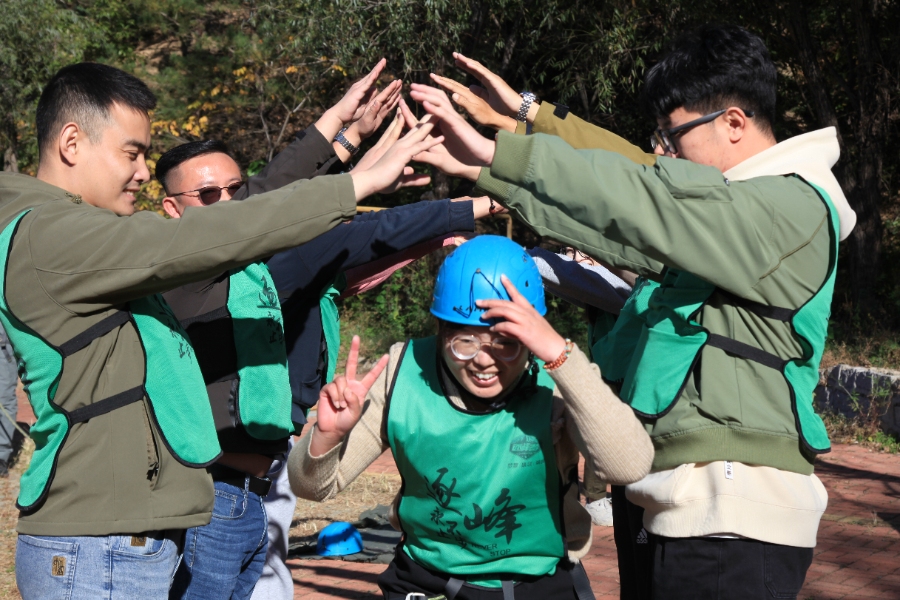 在高空斷橋項目中克服恐懼,激發(fā)自我潛能,在出發(fā)前感受團隊的支持和鼓勵,在成功后通過團隊搭建的勝利寶塔。在過程中體會團隊的鼓勵和支持對個人的重要意義,培養(yǎng)積極進取的工作與生活態(tài)度。